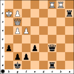- Qd3 R1c2!